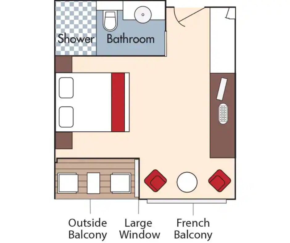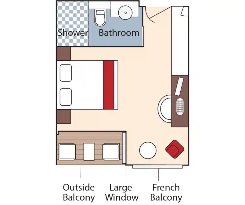 Price: $5749 per person Deck: Upper deck mid-ship Category: French & Outside Balcony Size: 235 sq ft Occupancy: 1-2 guests