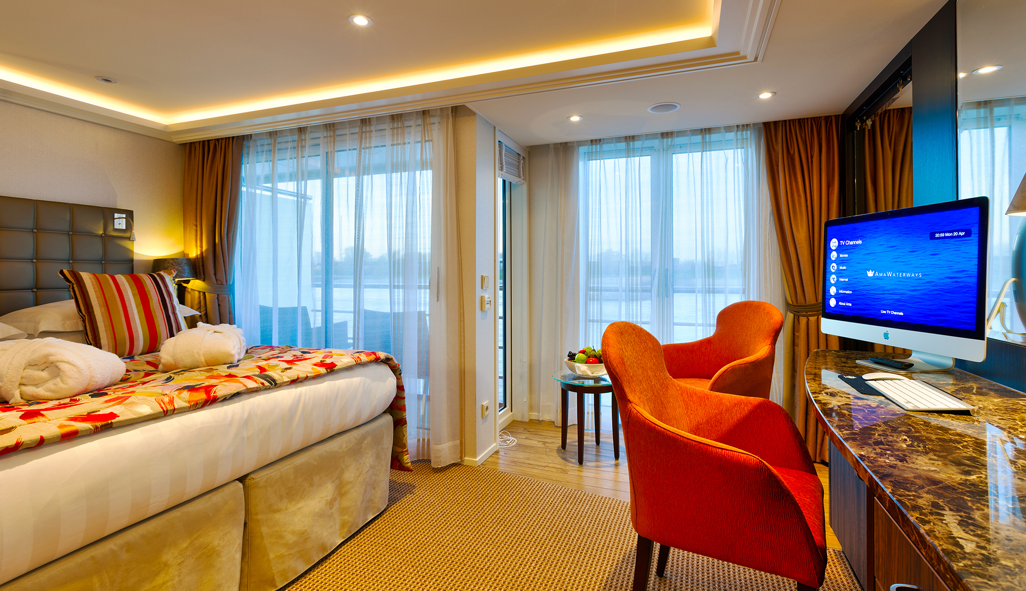 • Entertainment-On-Demand in all staterooms featuring free high-speed internet access, movies, a music library and English language TV stations