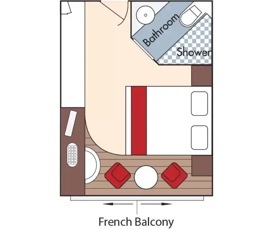 Price: $4449 per person Deck: Upper or Middle deck aft Category: French Balcony Size: 170 sq ft Occupancy: 1-2 guests