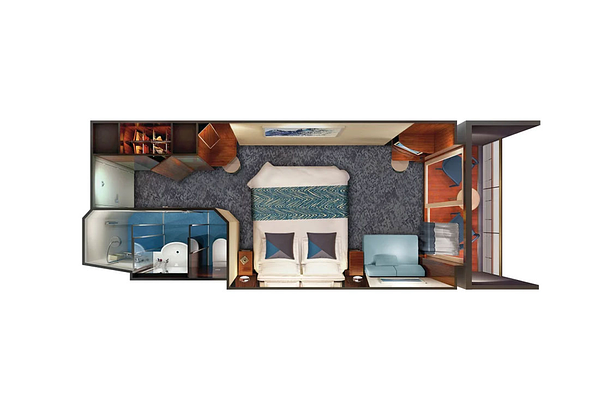 Floor-to-ceiling glass doors open to a private balcony with sweeping views. So enjoy beautiful sunrises, breathtaking sunsets and a cozy and comfortable room designed with you in mind. Up to 4 Guests 200 - 289 Sq. Ft. Total Forward, Mid, Aft Locat...