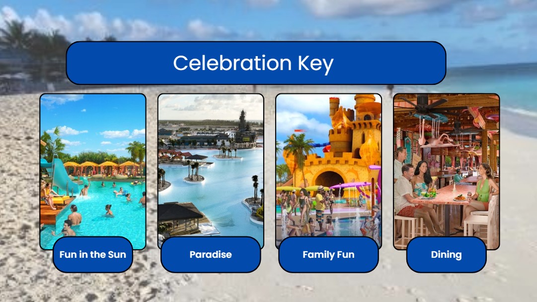 Your next stop is Celebration Key, Carnival’s brand-new exclusive destination in the Bahamas! Get ready for: