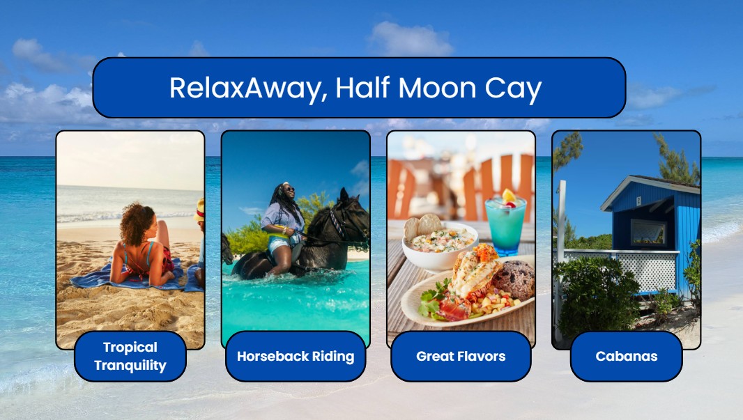 Welcome to RelaxAway, Half Moon Cay, Carnival’s private island paradise! Spend the day: